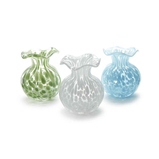 Ruffled Edge Spotted Glass Vase – 6.25" Decorative Vase in White, Blue, or Green