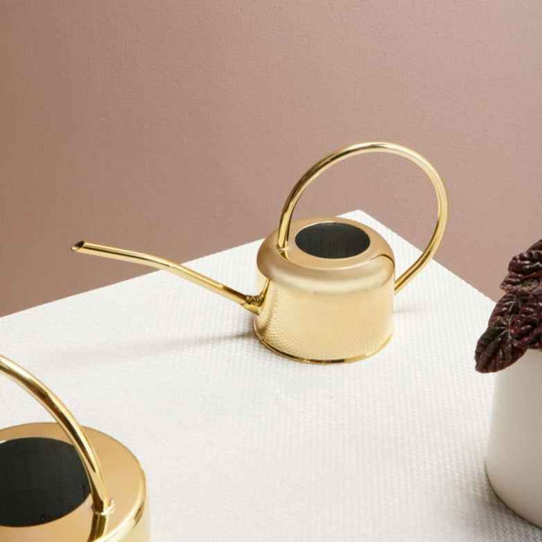 The Henri Watering Can is sophisticated and adds a touch of elegance to your plant accessories and is also quite useful! It is a shiny gold metal and well made.