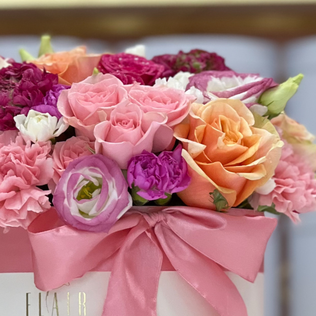 We will go above and beyond to ensure that this flower hatbox is not only beautiful, but also functional. The lower profile design makes it perfect for coffee tables, dining room tables, and other areas where space is limited. We believe that luxury, elegance and style should be accessible to everyone, which is why we've kept the design simple yet stunning. This box is perfect for any occasion, whether it be a birthday, anniversary, or just because. In your choice of our signature pink or white box. Choosing Designer's Choice for floral arrangements gives us creative freedom to use the freshest flowers in season and create a unique, stunning, and expertly crafted arrangement. The arrangement will be one-of-a-kind and unforgettable, with a focus on luxury, elegance, and style.