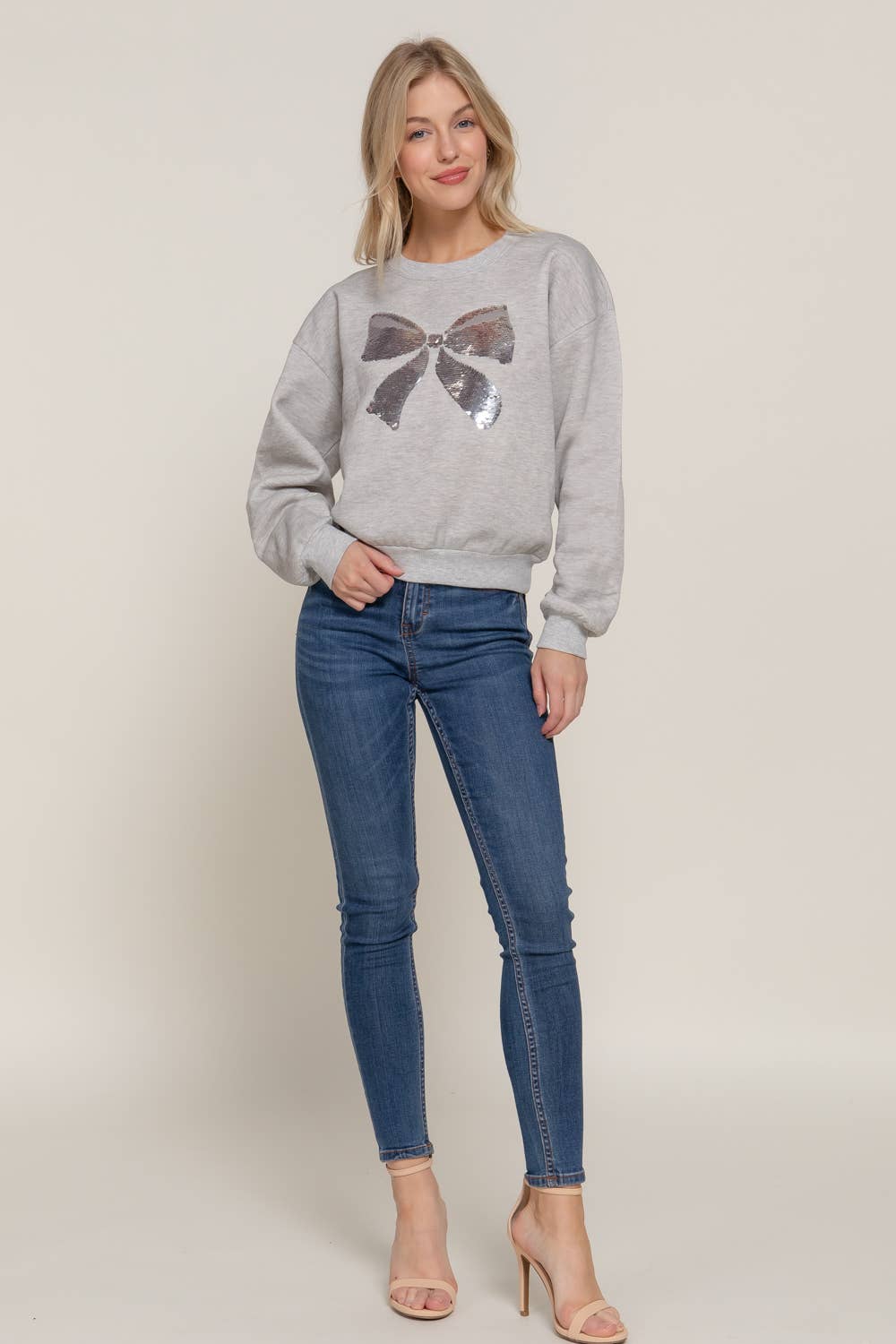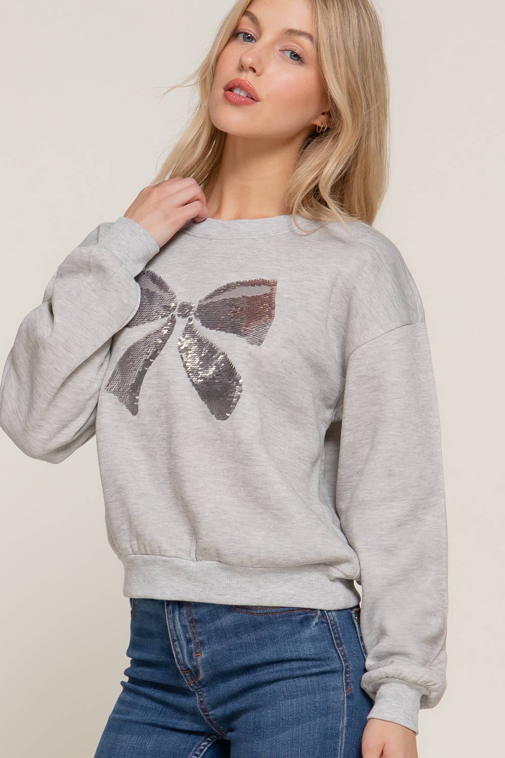 Introducing our newest arrival, the Long Sleeve Crew Neck Sequin Detail Inner Fleece Sweatshirt. Made with 100% polyester inner fleece French terry fabric, this sweatshirt is both stylish and comfortable. Ideal for the fall and winter seasons, it features trendy sequin embellishments and is a must-have for any casual wardrobe. Stay warm and cozy while looking fabulous this Christmas and holiday season with our new comfy and essential sweatshirt.