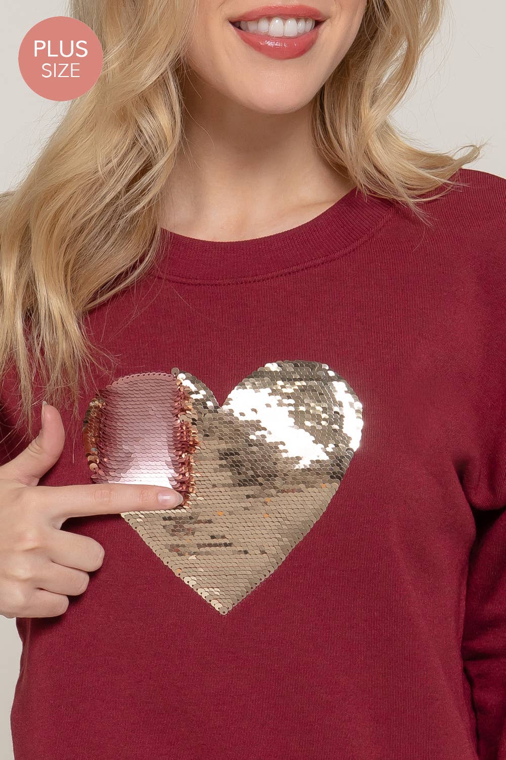 *** PLUS SIZE *** LONG SLEEVE CREW NECK SEQUIN DETAIL INNER FLEECE SWEATSHIRT FABRIC: INNER FLEECE FRENCH TERRY 100% POLYESTER - plus size, plus apparel, plus clothing, curvy, new arrivals, active basic, active usa, sequin, sweatshirt, fall, winter, comfy, trending, must have, must-have, essential, casual